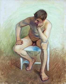 The success of his Blue Paintings had given him financial security allowing him to paint studies of nude men which also fitted with an interest in athleticism/vitalism at the time. Flottans Badhus (1907) & Two Models (1908) & Seated Nude (c1906)