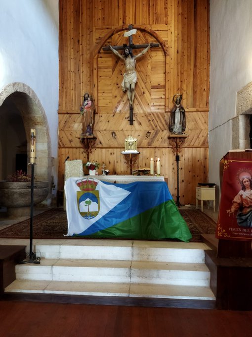 The municipality of #Fuertescusa in #CastileLaMancha, #Spain, has officially presented its new #flag and #coatofarms to the public. #heraldry #vexillology