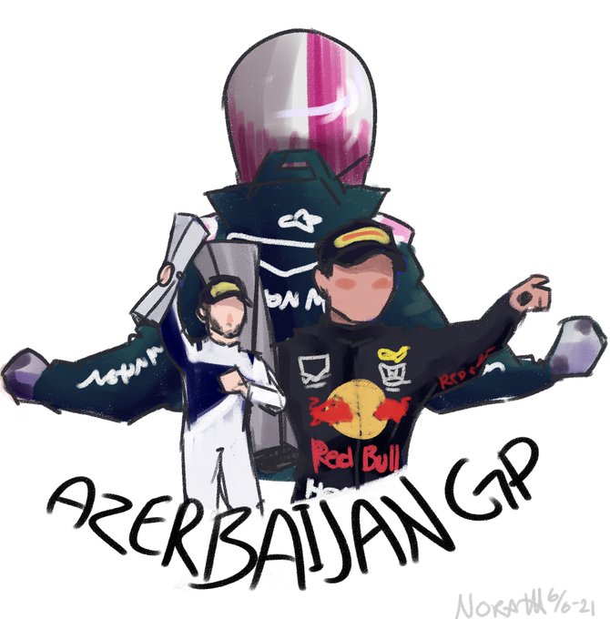 もうすぐアゼルバイジャンGP🇦🇿なので、昨年のアゼルバイジャンGPで表彰台を獲得したマシン達のイラストを投下!!🎨