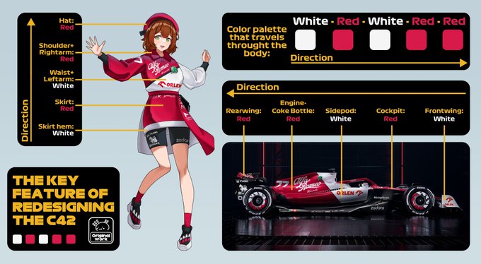 Didn't satisfied with the @alfaromeoorlen C42 original design after the #F1 #AzerbaijanGP special was announced...... Then it tirggered the redesign procedure where I put more focus on the color palette. She was cute before, but even better now 🥰