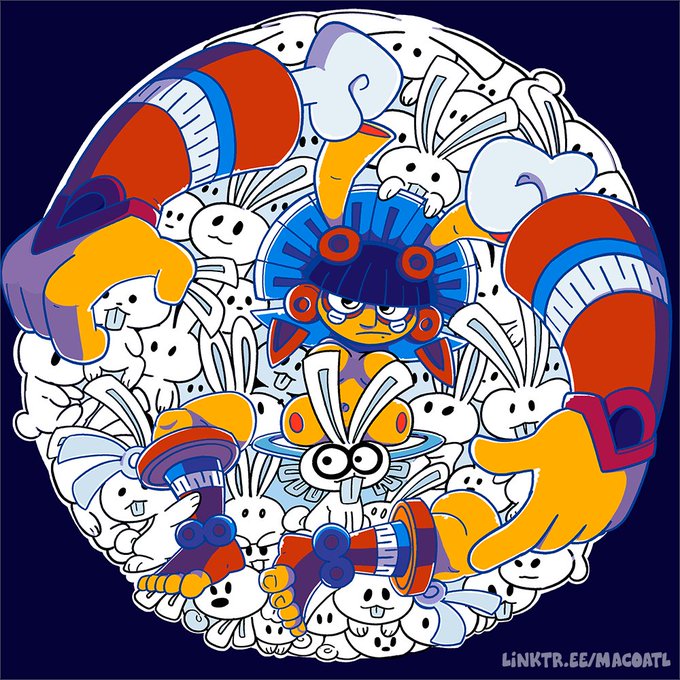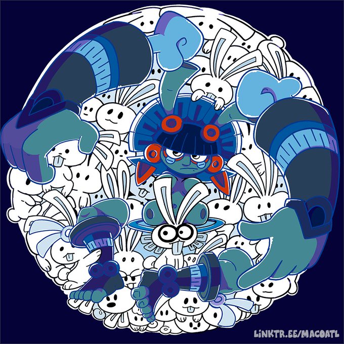 And to kick start this last week of the Aztec year of the rabbit, here is Coyolxauhqui, the moon, and all the moon rabbits. And remember, if you post anything rabbit/prehispanic themed this week use the Hashtags #Aztec_end_of_the_year #Xiuitl_Tochtli