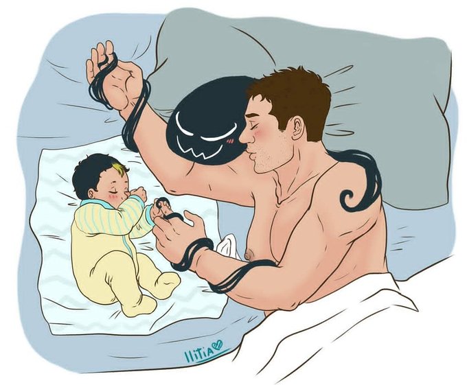 I needed to do this, draw their first night as parents, and I still have more cute scenes to draw, enjoy them! #babysleeper #mpreg #ficnobis #nobis #symbrock #veddie #Venom #Venom2 #venomxeddie #malelactation #myart