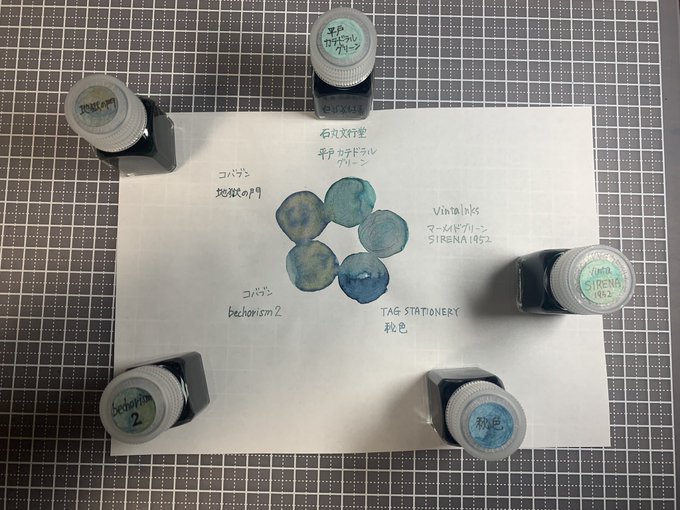 INK:Tono&lims 風花・六華、エルバン ミントグリーン、文具館コバヤシ bechorism2、乙女座会 金貨・銀貨、冬陽リッカ 冬じたく