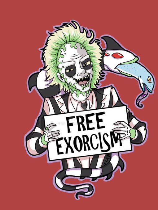 Beetlejuice Beetlejuice Beetlejuice! Get your free exorcisms from the favorite bioexorcist ghost with the most here! v