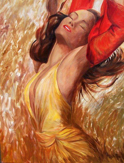 Woman in painting, beautiful woman with gold and Bronze 27x36x1.5. Limited edition giclee on canvas https://t.co/PqTVTB4We6 #bestofetsy #paintingbysharareh