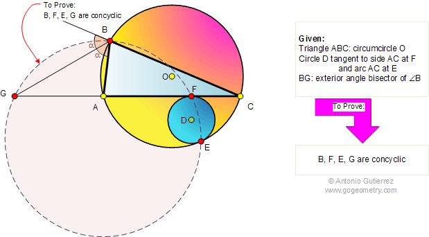 #Geometry Problem 338 #Triangle #Circle Exterior angle #bisector #Concyclic points