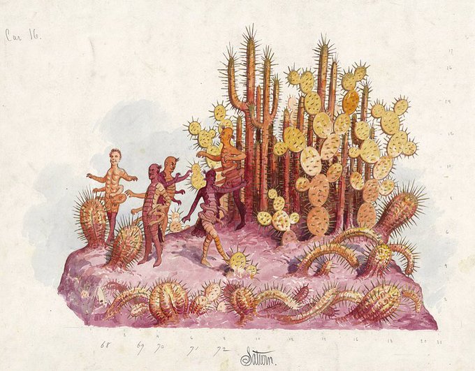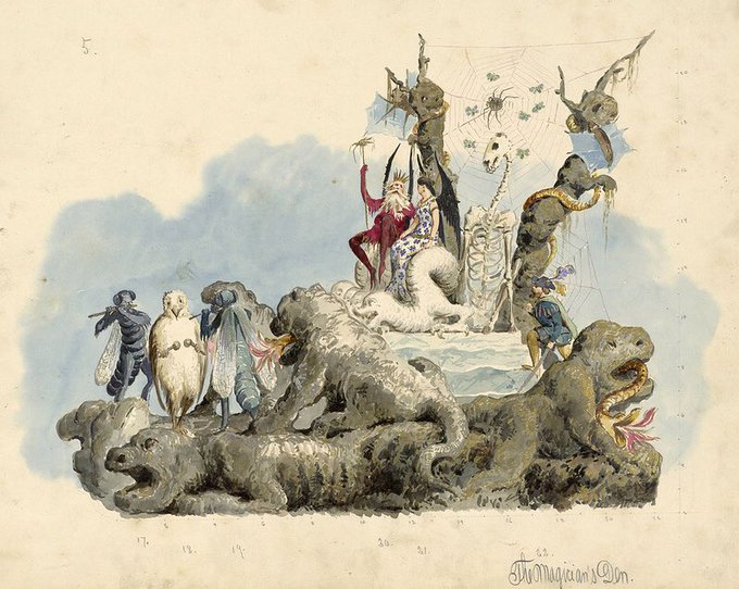 Designs by Carlotta Bonnecaze for the Krewe of Proteus' parades in the #NewOrleans #MardiGras parade, 1880s and 90s. See more wonderful designs from the "golden age" of Mardi Gras here: https://t.co/hc9SEnd9Zj