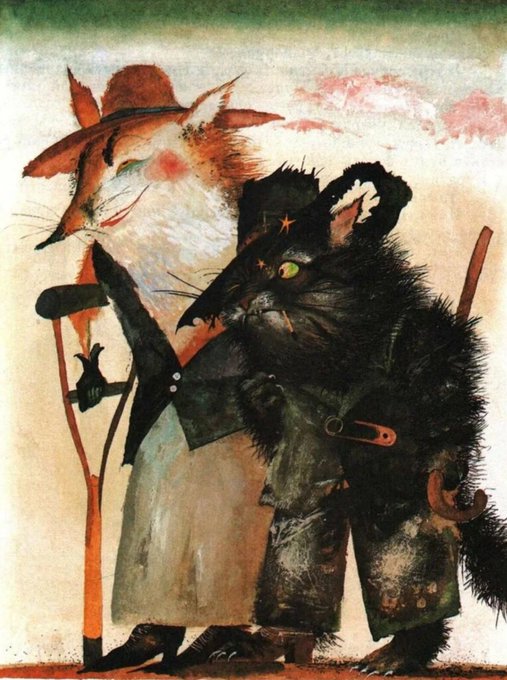 #BookIllustrationoftheDay3 #sovietart 'The Golden Key, or the Adventures of Buratino' was Alexei Tolstoy's version of Carlo Collodi's Pinocchio. These are luxurious illustrations from 1984 by Aleksandr Koshkin.