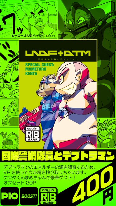 #BOOST新刊情報 8/11(土)大田区産業プラザPiOで開催される「ブースト!」にサークルA20「カルビ!!」で参加します。新刊「ハヤトとデブトラマン」出ます!既刊も持って行きますよ!よろしくね!(最後の1枚はサークルの敷き布画像です。)