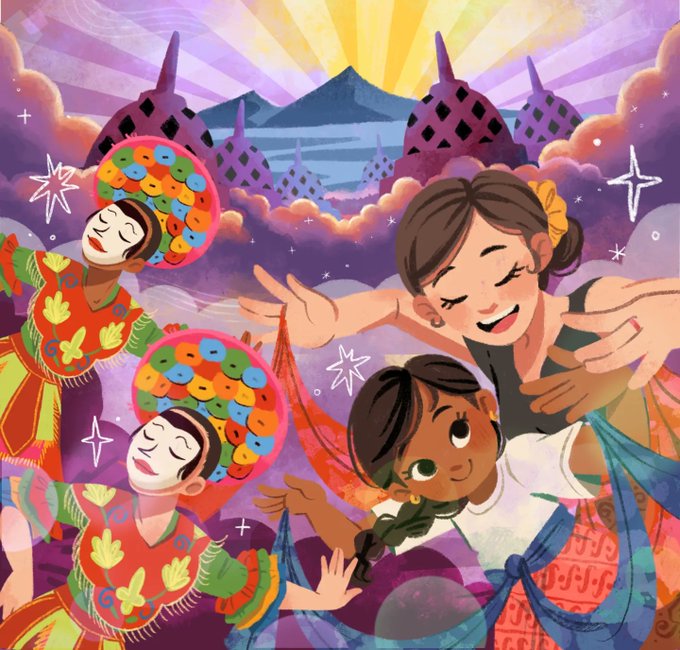 Hampir meninggal bikin awan karena ternyata susah banget brok. Tapi I happy ngerjainnya, gabung2in beberapa budaya dan khas Indonesia trus dibikin meriah warna warni.