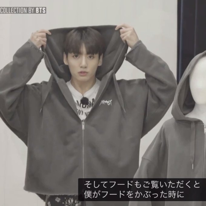 フードは食べられるくらい、首がタイトにならず、メイクが付かないくらい横に余裕があるくらい大きめが好きなグクミン🐥🐰