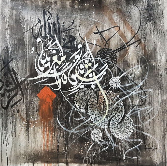 Islamic Calligraphic paintings of Saqib Gohar available for sale. You can also visit the given link for more details about paintings and artist and also contact us on our gallery official WhatsApp +923144197232 for any further inquiry and assistance.