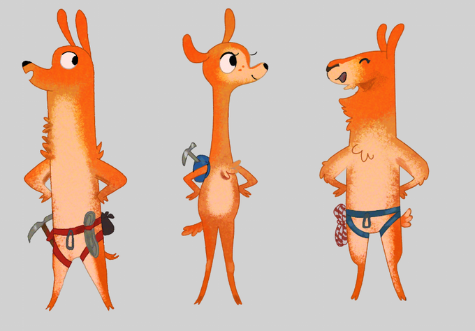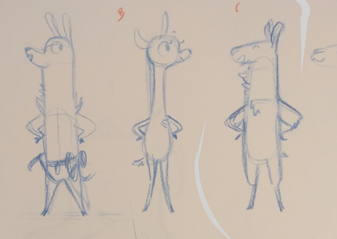 Rejected old sketch. I kinda liked theses littles camelids so gave them colors