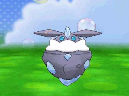 A Pokémon who can speak through telepathy and is born from a Carbink that undergoes a mutation; it can create diamonds by compressing carbon in the air.