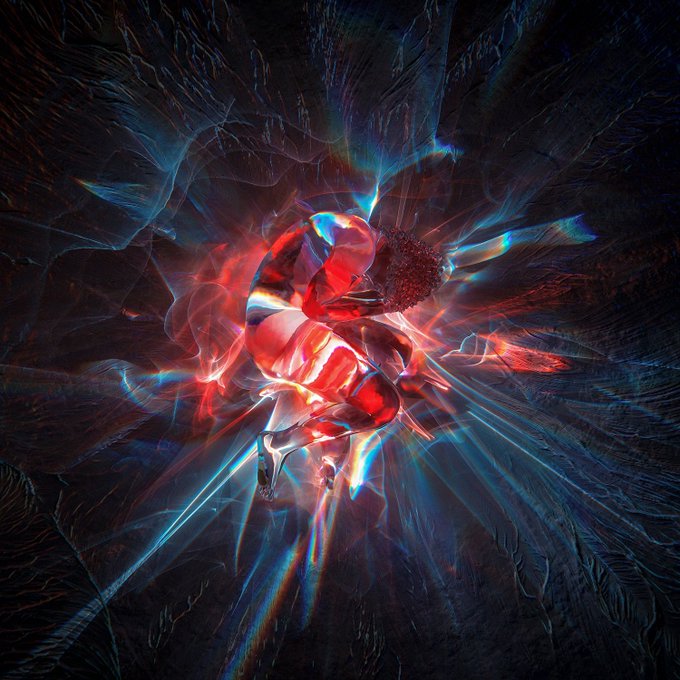 and the way it passes through various mediums. I love glassy rainbow caustics, surreal psychedelic alien landscapes and strange-looking 3D-glitched people. Lately my work has taken a slightly darker turn, owing to difficult life events, yet I still feel it is still ME.