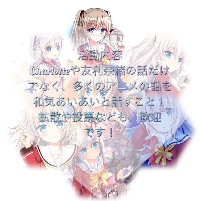 Charlotte好きな人、友利が大好きな人、Key作品が好きな人、https://t.co/1Ba2bKkL1oが好きな人、あやねるが好きな人、どんな人も大歓迎!