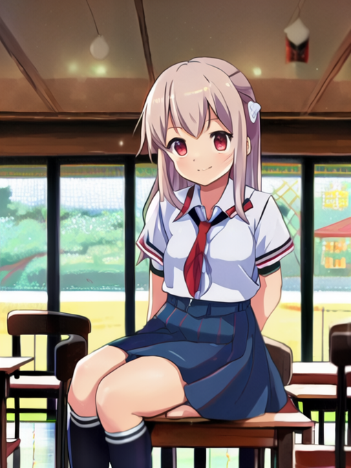 CJDで出した2枚目(人物)と3枚目(背景)をくっつけてPDでi2i変換して、出たものを加筆や切り貼りや色調整をしつつPDでi2iを繰り返した