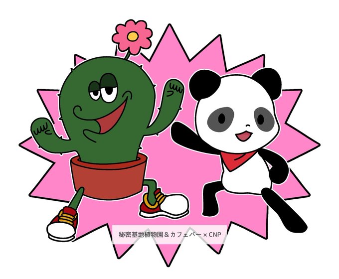 CNP Ownersに登録したいけどなかなか良い特典が思いつかなかったけど色々と考えて秘密基地植物園のキャラとCNPのキャラが遊んでいるイラストをシールにしてプレゼントしようかなと思っています!