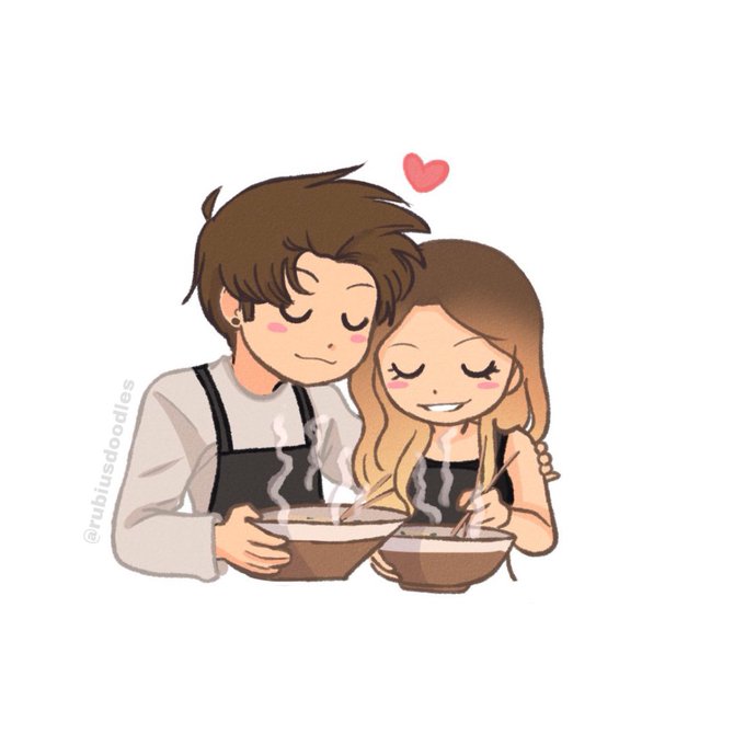 Míni doodle del directo de hoy porque si. Porque son muy monos y desastrosos juntos🥺💥 y me la pase super bien ademas el ramen tenia pintaza 🍲 #rubiusfanart #CocinandoConRubina #CocinandoConRubius