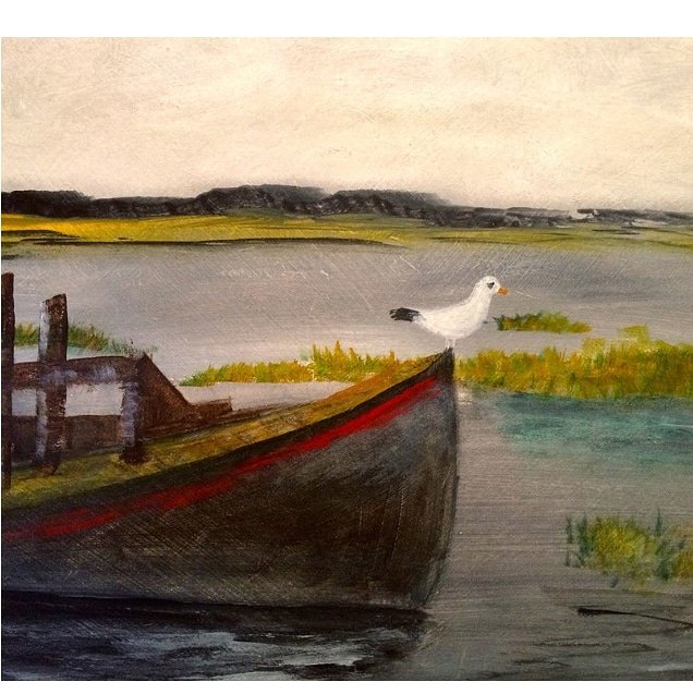 Seagull on Old Boat, Acrylic on board, 30 x 21 framed