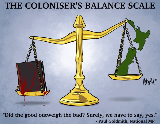 Thanks to Paul Goldsmith's dumb af commentary on colonisation being good for Māori, I had a couple of ideas I had to draw just to get out of my head.
