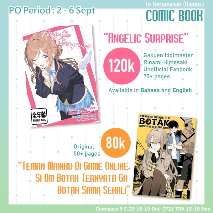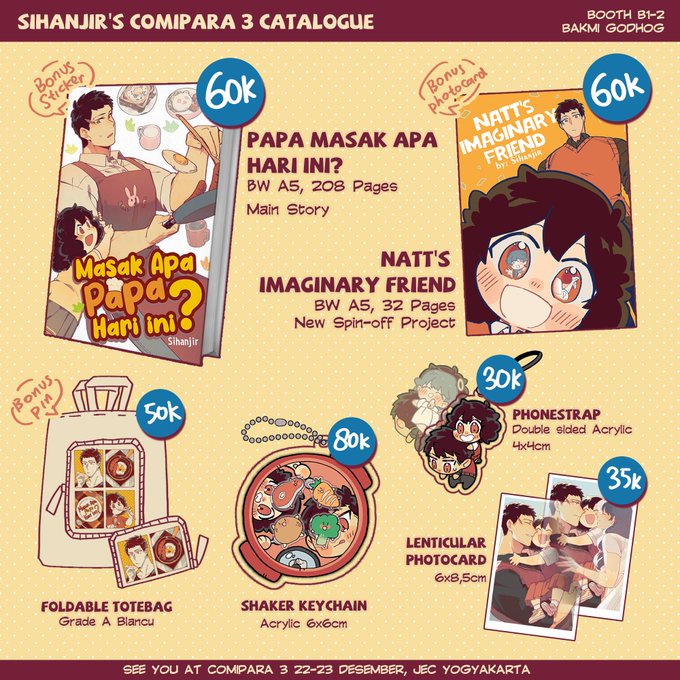 I'll attend Comipara 3 at JEC, Yogyakarta on 21-22 Dec '24. And here's my catalog~ (Doujin preview in reply👇)