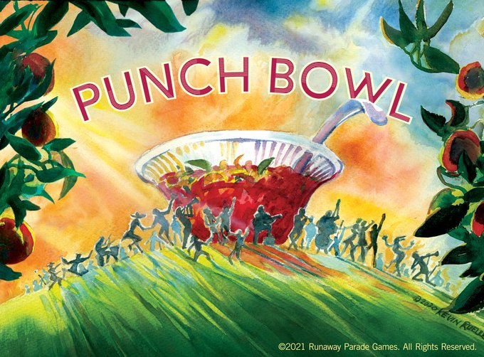 9/ Punch Bowl [working title] (@RunawayParade ). A very pretty take-that area control game with top notch (prototype) components! Looking forward to seeing this come to crowdfunding! Has a very sleek deck thinning/customization mechanic. Played with @TimMakesGames and more