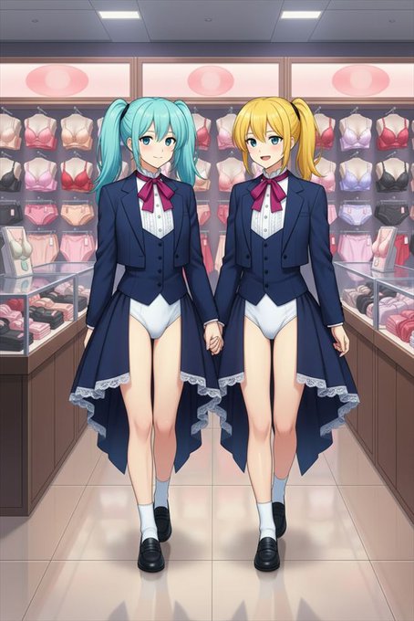 #AIart #Grok3 #AI男の娘 #レオタード 男の娘お嬢様カップル 下着売り場で買い物する様子を #copainter で編集して貰ったやつ