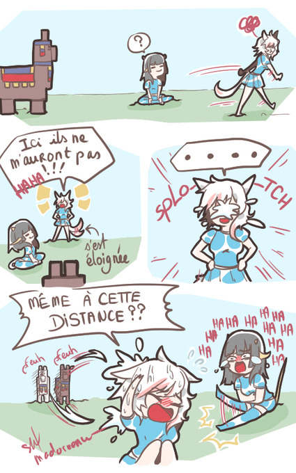 Le fameux crachat des lamas sur Minecraft (avec les perso de Telest et Chronox sur FFXIV pour les reconnaitre XD)