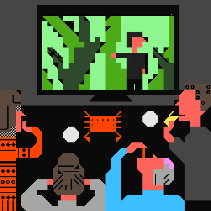 We watched the lobster while eating crabs & crayfish, @BunnydarkoB 's style :) #petscii