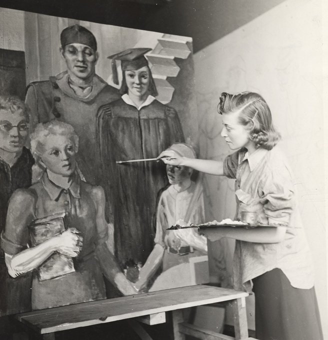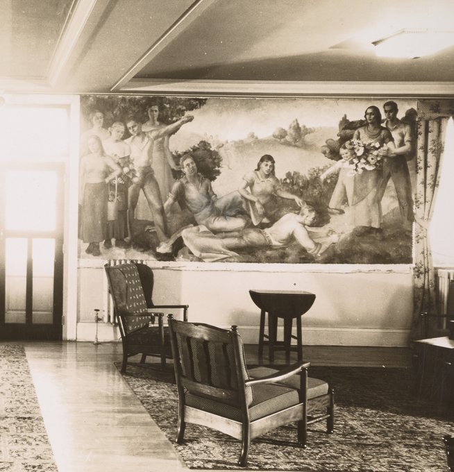 “Recreational Activities” (1937) by Edna Hershman for the Nurses Recreation Room in Roosevelt Hospital, North Brother Island. #WomensHistoryMonth #WomenArtists #NewDeal #WPA #PublicArt #TBT