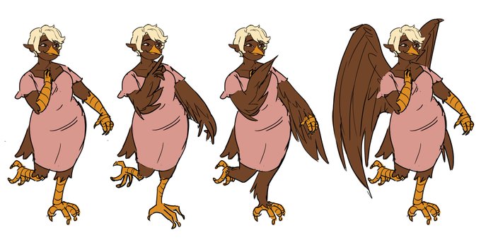 One of your HR reps and handler of all thing administrative, here's designs for the harpy, Heather Roc. Small and sweet, she's overtly friendly, has a consistently chipper attitude and heart of gold.