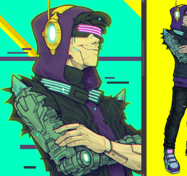 Caught the cyberpunk bug in a big way, and drew my friend’s #cybersona, which is definitely not a thing.