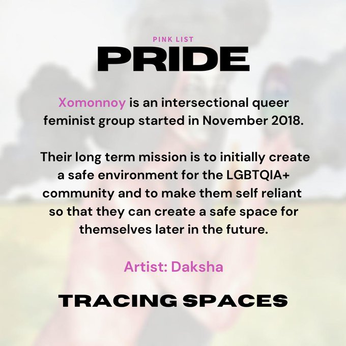Featuring @xomonnoy, an intersectional queer feminist group started in November 2018. Artwork by Daksha.