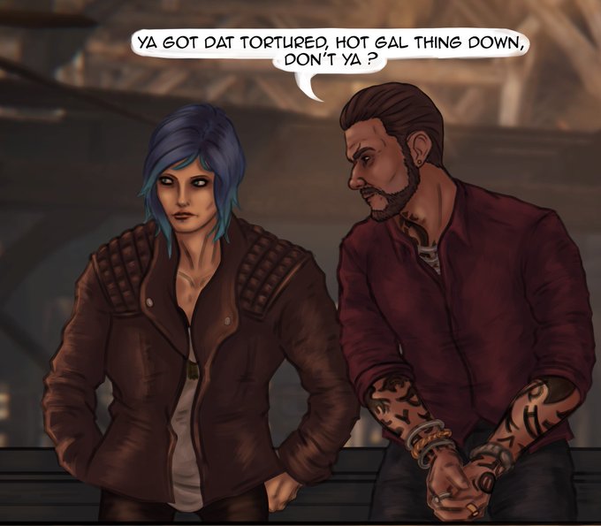 #myart #fanart #LifeIsStrange #chloeprice #beforethestorm #artists #digitalart #lischloe #lisdamon #damonmerrick #art #artistsontwitter #prrick #damonmerrickxchloeprice #damonxchloe When your boyfriend is way stronger than you. [In private playfully pushing/nudging each other]