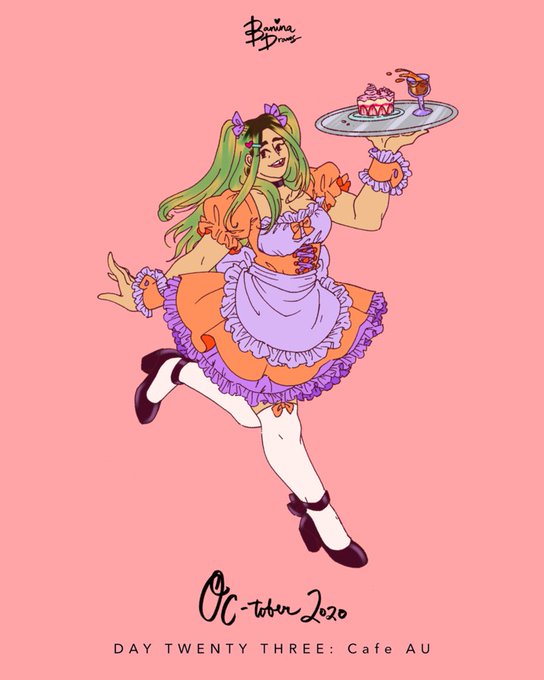 #OC_tober2020 Day Twenty Three: Cafe AU 🍰☕️ Since I’ve got one last prompt to fill, I drew myself in a maid cafe outfit! 💖 Tomorrow’s post will be my last one for OC-tober and I’m EXCITED.