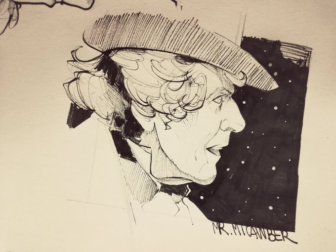 Quick doodle this morning to try out some new pencils. #MrMicawber #charlesdickens #fabercastellpollychromos @SGFADrawing @DickensMuseum #caricature #portrait #davidcopperfield