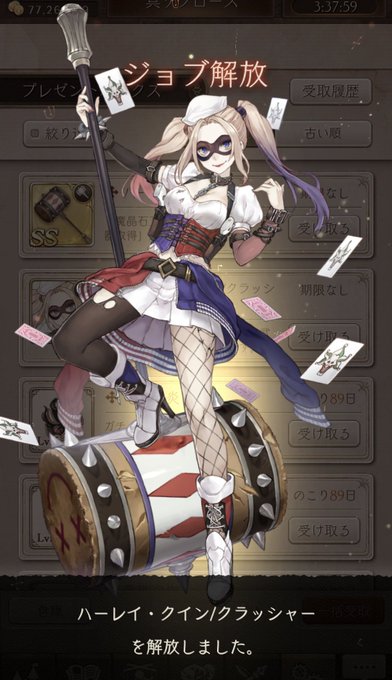 シノアリスDCコラボ配布含めて最低限のお迎えは出来ました☺最低限っていうのはシノアリスキャラ以外って形ですね。ハーレイクインは課金お迎えしか出来ない仕様で悩みましたが私はどうやら釘宮病患者のようで悩んだ末に課金しました。中々ないくぎゅタイプで課金して良かったぜ( ´∀` )b✨
