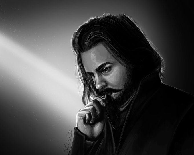 Twitter is going to murder this quality but it was a nice change to go back to black and white portraits again. A gift for my GM/Husband @McClainHighland of his magus, Dionisio. #ttrpg #characterart #illustration #digitalart #paizo #pathfinder