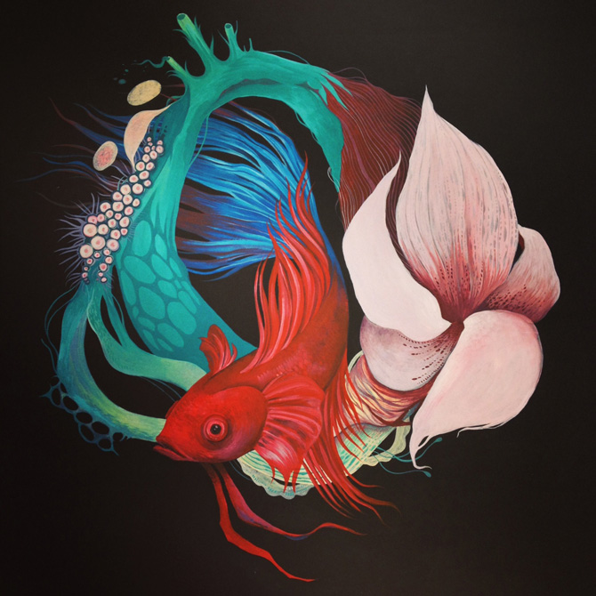 "Stasis" Acrylic on wood by Roberta Maddalena Bireau (1981), she is a creativity geek and interdisciplinary artist based in Berlin, where she works as an illustrator, painter, designer, art director and musician. #womensart #portartwomen #art #arte #donneartiste