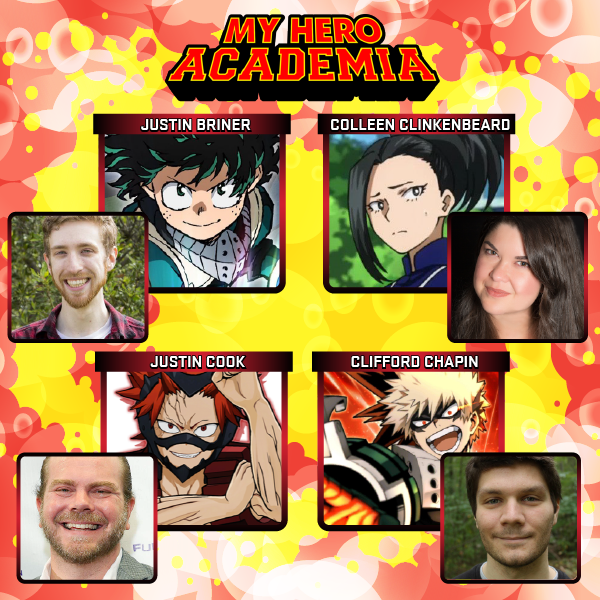 Don't miss voice actors @justinbriner, @ccarrollbeard, Justin Cook and @CliffordChapin from My Hero Academia at #DPCC2019! Buy tickets: https://t.co/eljpXPR6Ck