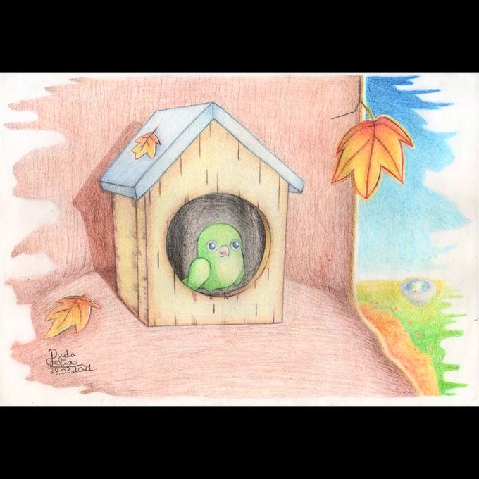 #adorodesenhar #drawinganimals #drawcolor #coloredpencil #illustration #cartoon #artworld #doodle #doodleart #landscape #scenery #autumn #bird #birdhouse