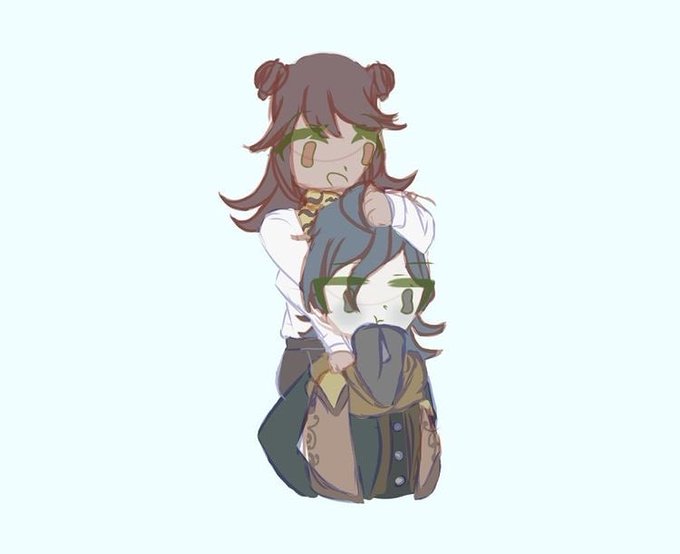 Funky lil lesbians. (I also HC Nico as trans MtF but she’s also a lesbian). Marin is a ray of sunshine constantly making sure Nico doesn’t hate herself. Nico gets easily flustered by Marin’s sweet comments. ##DanganronpaRebirth #DRRB #NicoHimuro #MarinMizuta