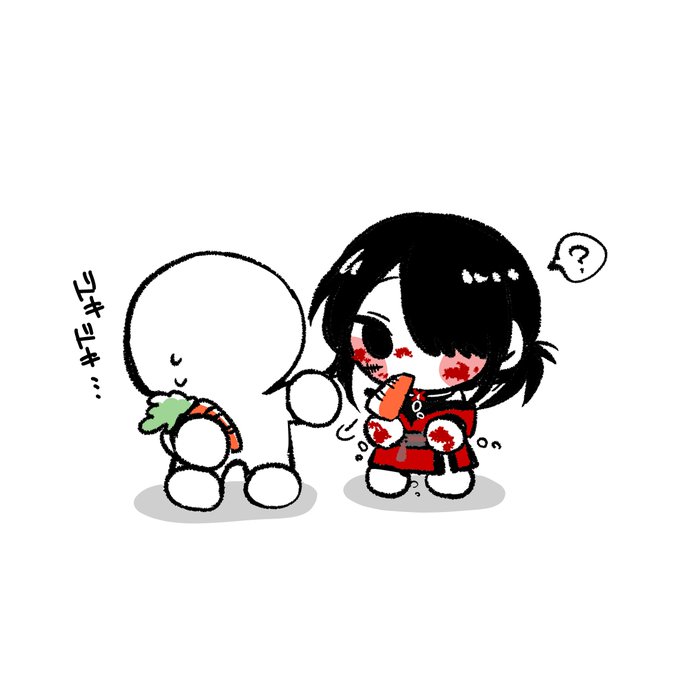 @E4_ND_ 逃げるよその子を追いかけるキュウ 口に食べ物を入れられて一旦大人しくなるキュウ さまざまなキュウ きゅうり #E_ESS_Q