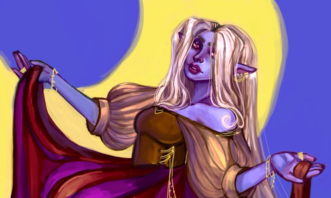 @MonereLluvia Me boi Denavir is a gentle soul (usually) who barely managed to escape the horrors of his home in the Underdark. Blessed with magic by Eilistraee, he seeks to undo what he can of the tragedy that befell his sister as a result of his own cowardice. He likes tea and dancing.