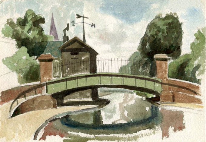 I thought I'd start today with this watercolour sketch for "The Horse Bridge" by Elwin Hawthorne from 1935. It depicts the bridge at Little Venice. #ElwinHawthorne #LittleVenice #StayHomeSaveLives #ELG
