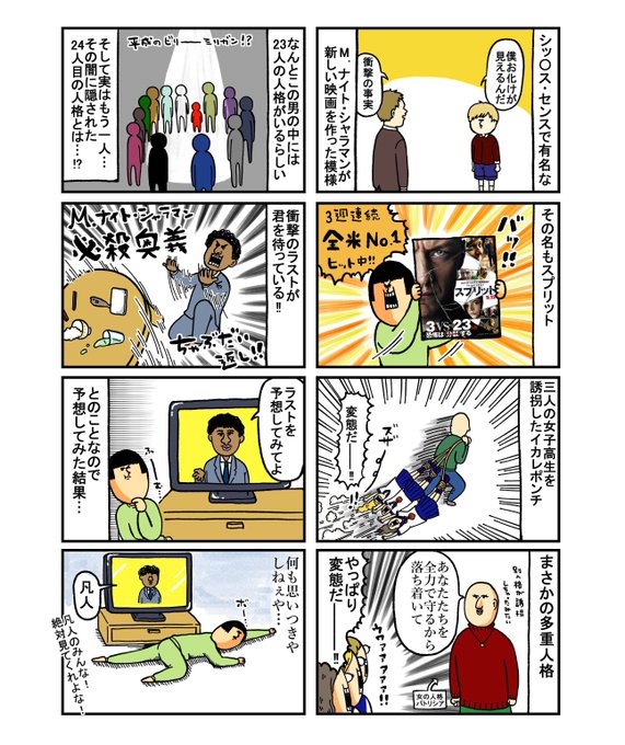 #山科ティナ さん、#洋介犬 さん、#まめきちまめこ さん等人気クリエイター達が『#映画スプリット』の衝撃的な結末を予想するオリジナルイラストを作成!🎨
