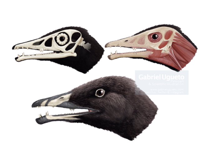 WIP, some things still left to refine/finish. Skeletal, musculature and full reconstruction of the head of Eudimorphodon ranzii, an early pterosaur from Late Triassic (Norian) Italy (Zorzino Formation) #paleoart #sciart #PterosaurPtuesday