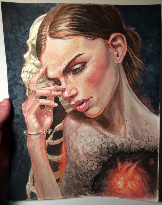 “Crow slayer” my favorite commissioned piece for my biggest collector and friend! Can’t wait to see it on his wall! Watercolor on hot pressed #fabrianopaper 51x31cm #danielsmithwatercolors #windsorandnewtonseries7 #traditionalart #watercolor #illustration #art #arte #contemporary