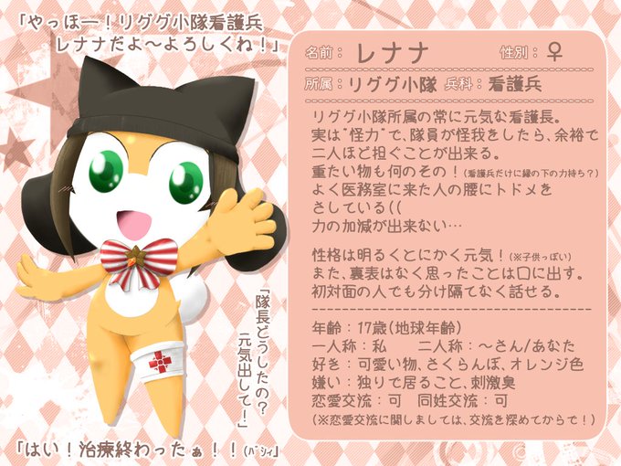 #FF小隊企画 #FF小隊企画CS リググ小隊さん所属の怪力元気っ子看護兵です! レナナ看護長でございます!! よろしくお願いします(´˘`*)